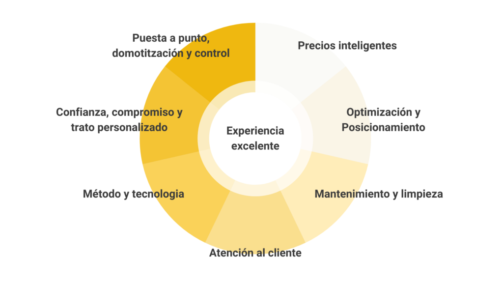Nos diferenciamos por crear una experiencia excelente al inquilino durante todo el proceso. Ofrecemos atención personalizada 24/7 tanto para el inquilino como para el propietario, Gestionamos la reputación online de cada propiedad.